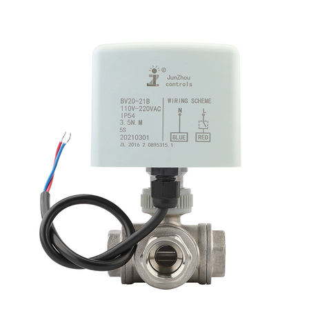 Junzhou Electric Manual Dc Actuator 3 Way Diverter Ball Valves DN25 12V 24V