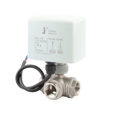 Junzhou Plumbing Fixtures Water Flow Control 3 Way Smart Motorized Valve 220V 24V 12V